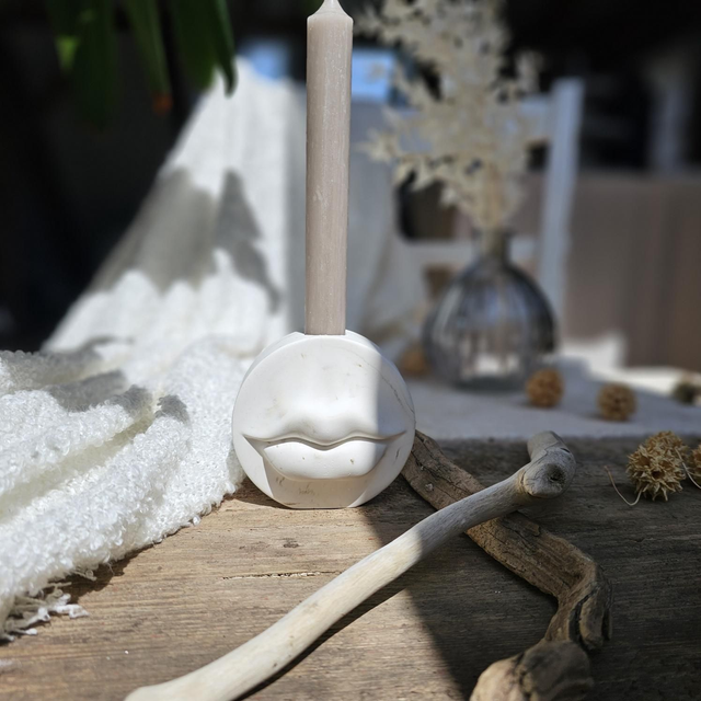Dieser Kerzenhalter in modernem Kussmund Design besticht durch seine matte, fast samtige Oberfläche.💋