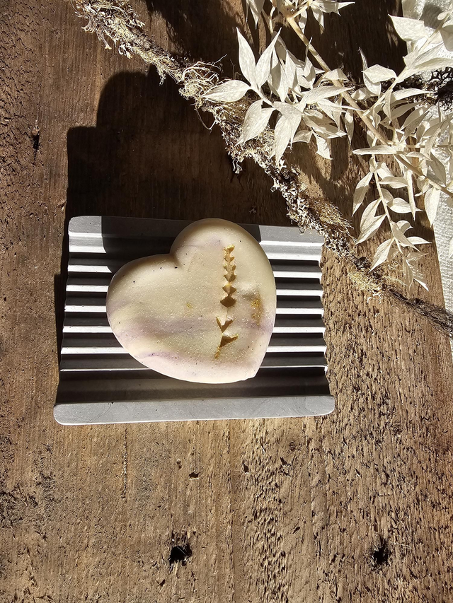 Diese Seifenschale aus Steingut in modernem Design verhindert durch die gezackte Oberfläche das ankleben der Seife.
